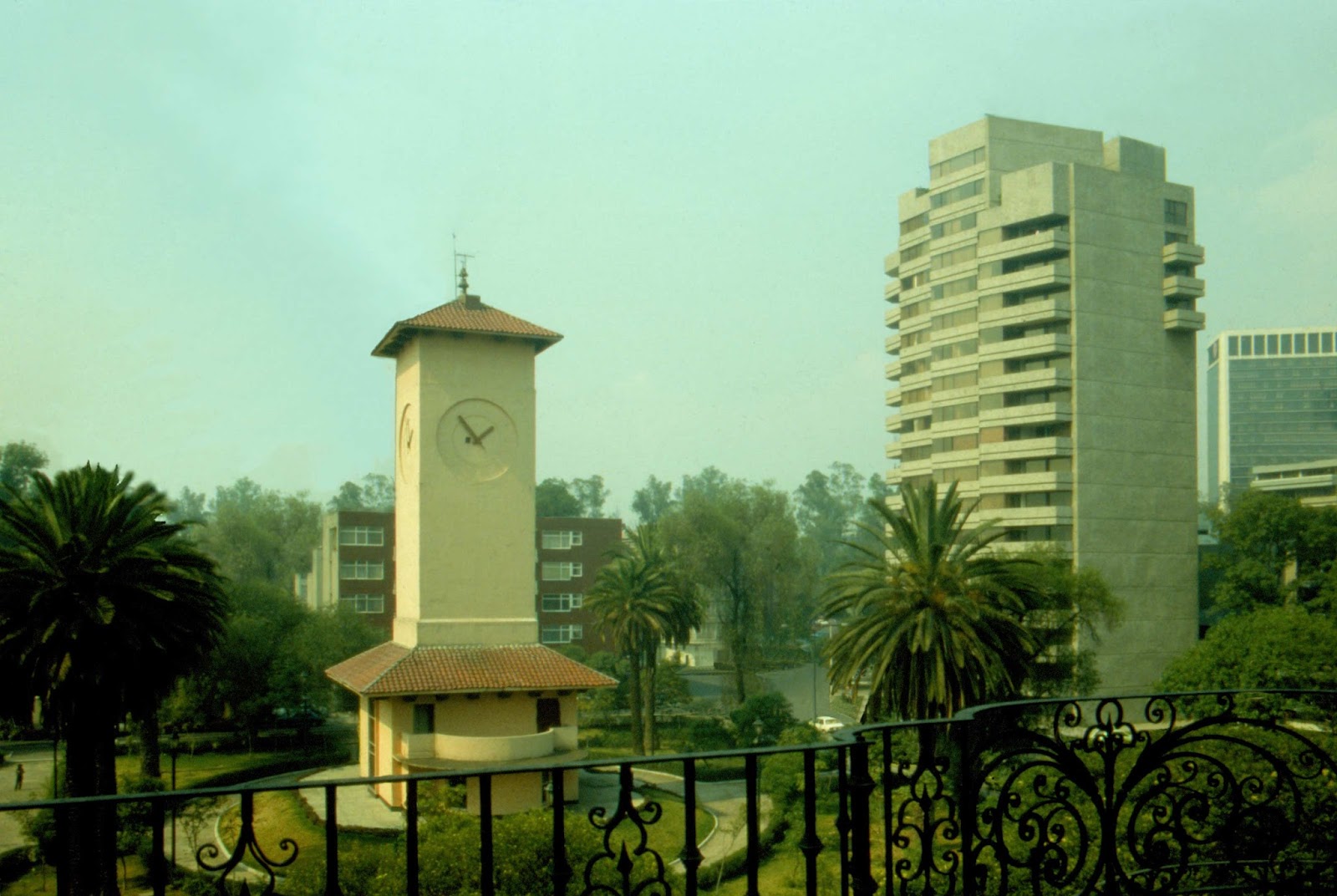 El fraccionamiento era una nueva aventura del arquitecto José G. De la Lama asociado con Raoul Basurto, que luego de comercializar los terrenos que habían pertenecido al “Hipódromo de La Condesa”, varias zonas de la Colonia del Valle y retomar el mercadeo del fallido “Chapultepec Heights” como “Lomas de Chapultepec”, urbanizaban ahora una fracción de la “Hacienda de San Juan de Dios de los morales” que había pertenecido a la familia Cuevas (ver: http://polancoayeryhoy.blogspot.mx/2013/04/de-la-lamae-y-basurto-sa.html). En la imagen de arriba, el reloj palomar y abajo el lago y su “Isla con Acuarium”…