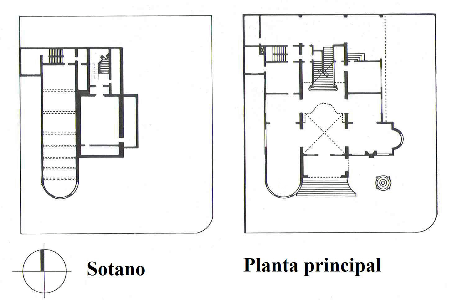 Al revisar las plantas, nos damos cuenta que la masa edificada se separa de la colindancia poniente a fin de liberar el volumen visto desde el parque, creando un espacio central de múltiple altura –HALL–, en torno al que se desarrolla la casa y sobre el que se desplanta un torreón que remata la composición con un techo a cuatro aguas, cubierto de teja a la manera andaluza; aunque la masa edificada se adosa a la colindancia norte, un alargado volumen de dos pisos complementa la composición hacia el poniente, y con un remate curvo crea la ilusión de un pabellón suelto, rodeado por jardines.